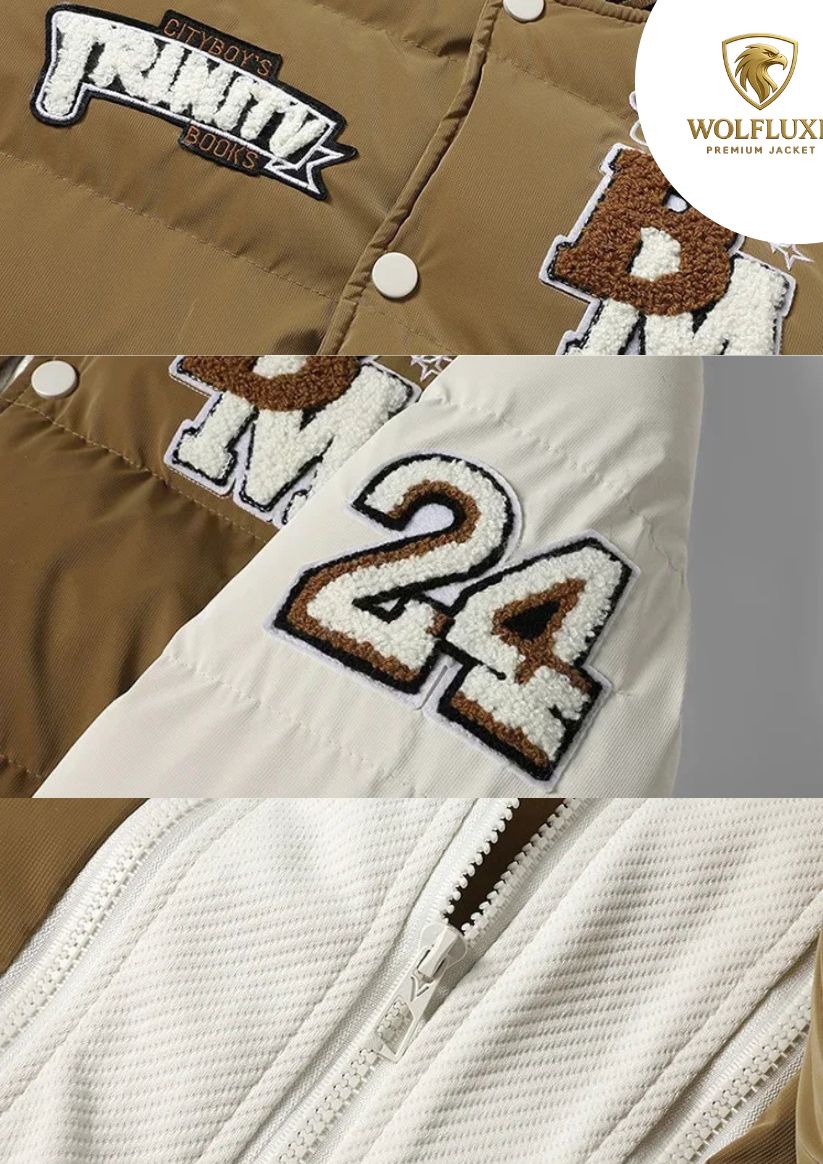 Design details include a fixed Hooded collar and a secure Zipper closure that allows for a full opening. The jacket is decorated with Embroidery, features a Letter pattern, and has a regular clothing length and regular sleeve style. It has no detachable parts and weighs approximately 1.3 kg.